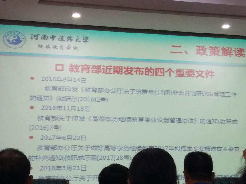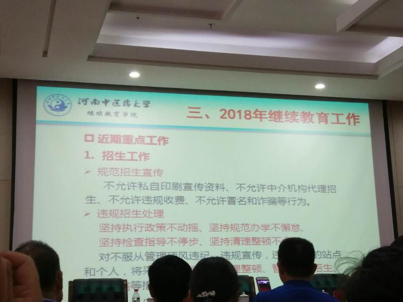 2018年6月15日,河南中医药大学2018年继续教育工作会议,在龙子湖校区隆重举行,河南省各个地方站点主要负责人参加会议。会议期间学校副院长田力发表讲话,总结2017年的招生工作,以及2018年招生工作安排。