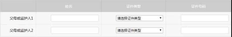 3、 在父母或监护人栏目录入姓名、证件类型、证件号码信息;