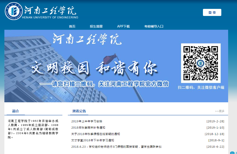 2019年河南工程学院成人高等教育网上学习通知,上半年的学习时间安排如下,望同学们根据自己实际情况按时进入系统参加学习和考试。