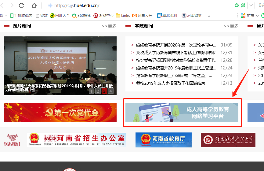 网址:http://cjy.huel.edu.cn/,点击河南财经政法大学继续教育学院上“成人高等学历教育网络学习平台”,转入网上学习平台。